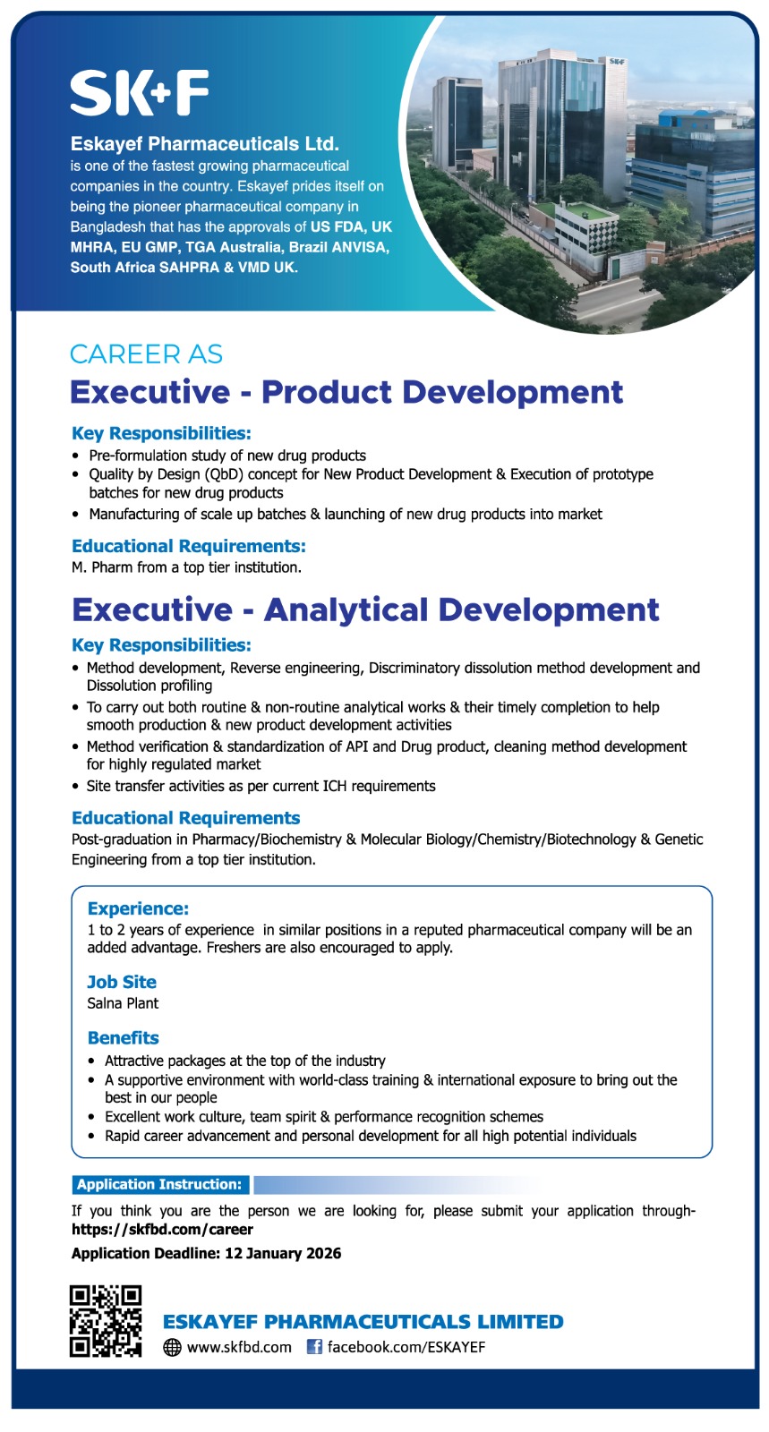 | Job Title: | Executive - Product Development & Executive - Analytical Development |