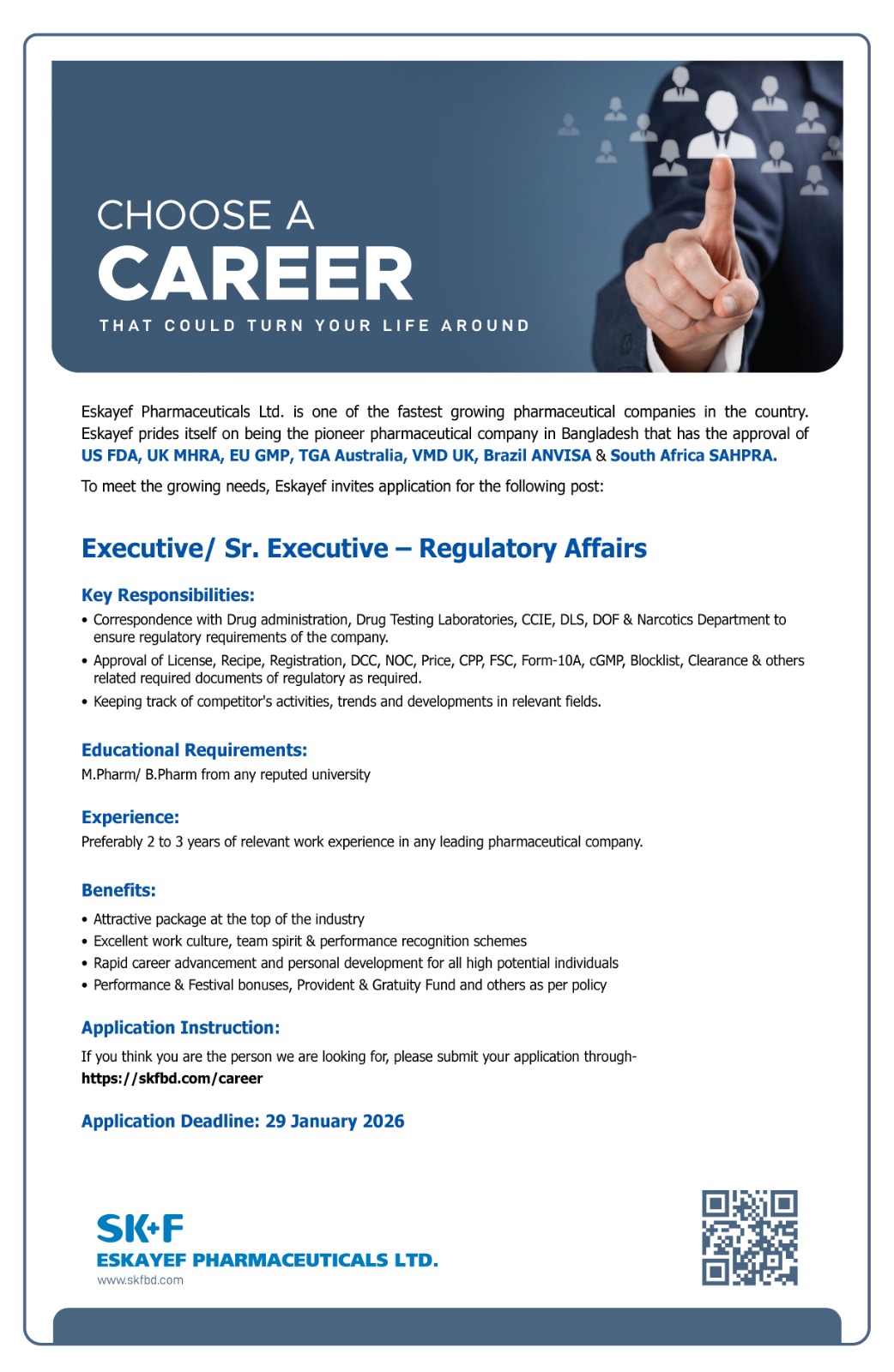 Executive/ Sr. Executive – Regulatory Affairs